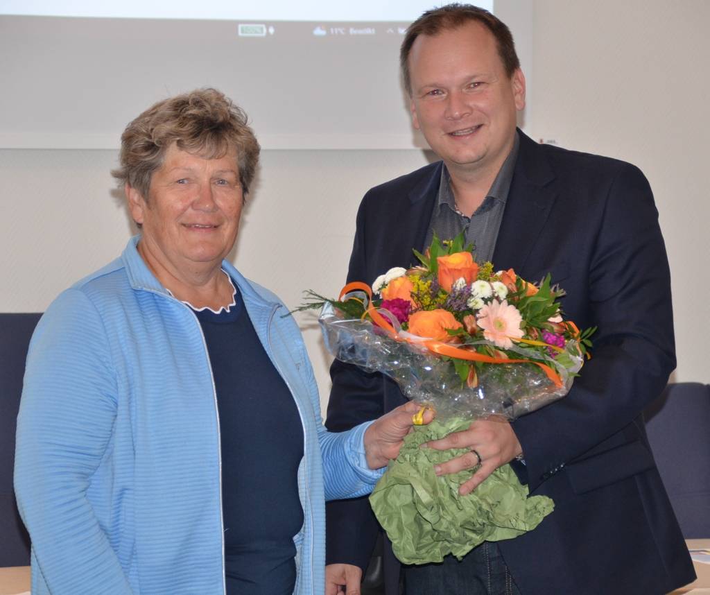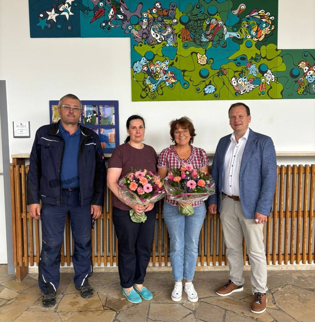 Gleichzeitig wurde Nelia Trojan als neue Reinigungskraft willkommen geheißen. Auch sie erhielt zur Begrüßung einen Blumenstrauß von Bürgermeister Christian Porsch.