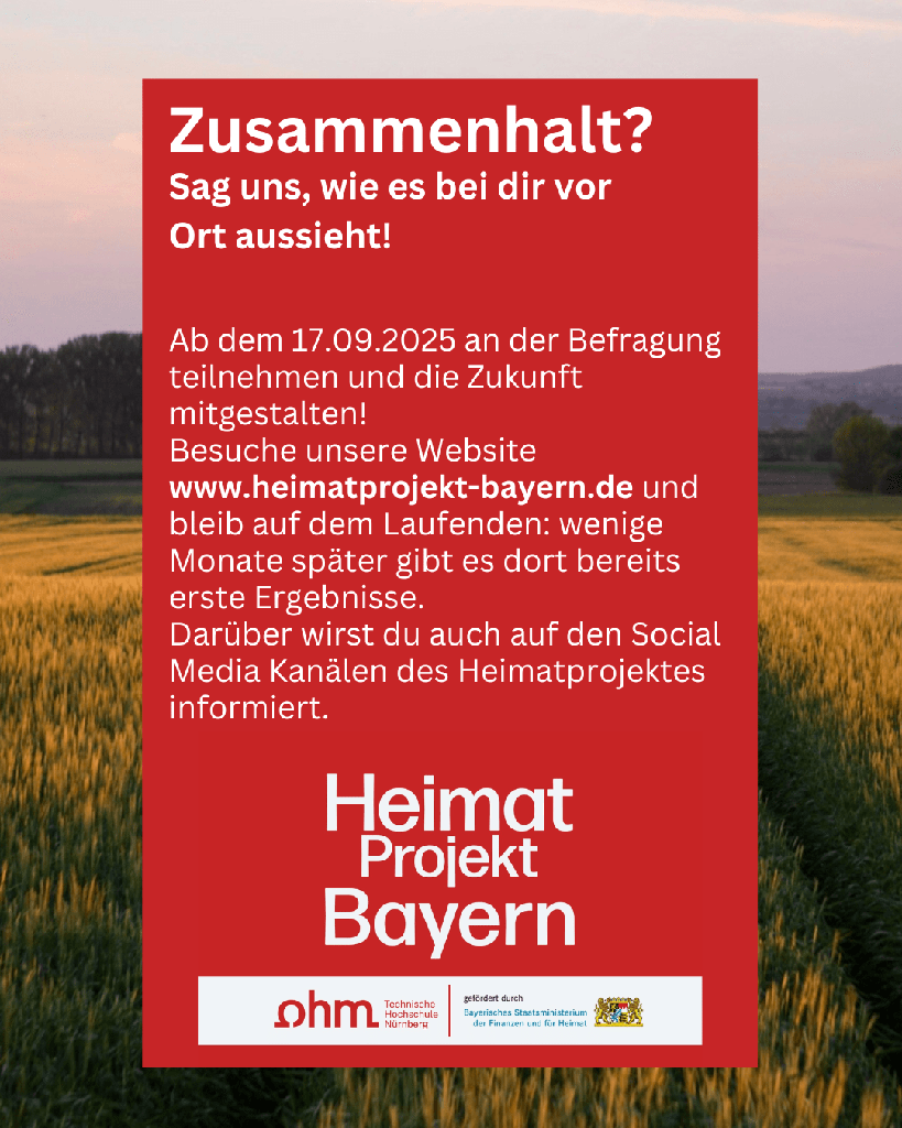 Hochschule Nürnberg bis 2026 in einem großen Forschungsprojekt in ganz Bayern. Gefördert wird das Heimatprojekt vom Bayerischen Staatsministerium der Finanzen und für Heimat.