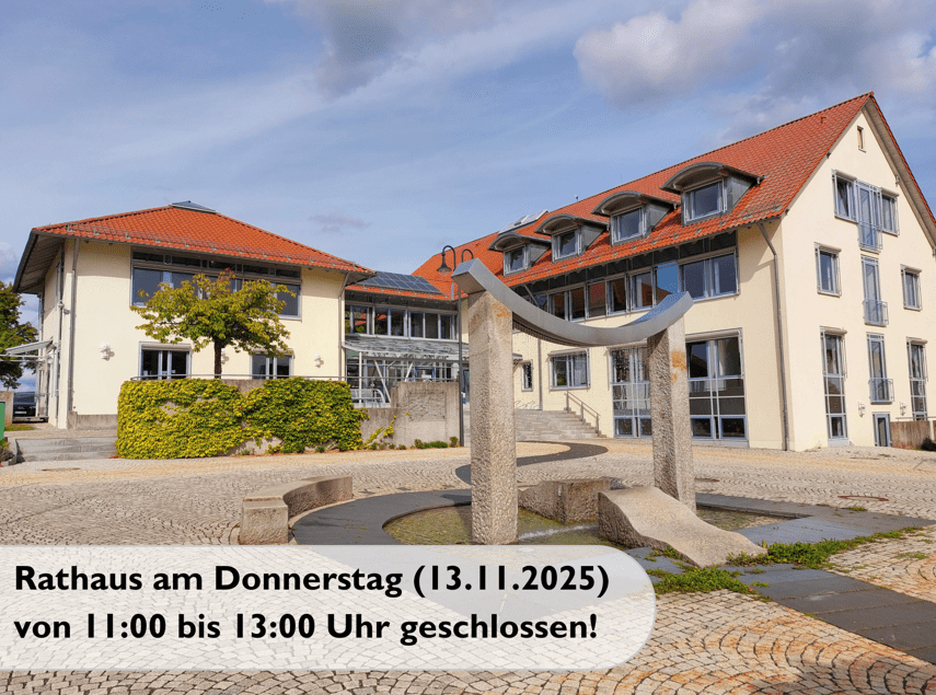 Am Donnerstag (13.11.2025) ist die Rathausverwaltung aufgrund einer internen Veranstaltung von 11:00 bis 13:00 Uhr geschlossen!